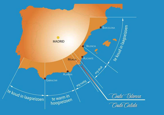 Het hoge aantal zonuren en de zomerse temperaturen maken van de Costa Blanca een ideale zonnebestemming!